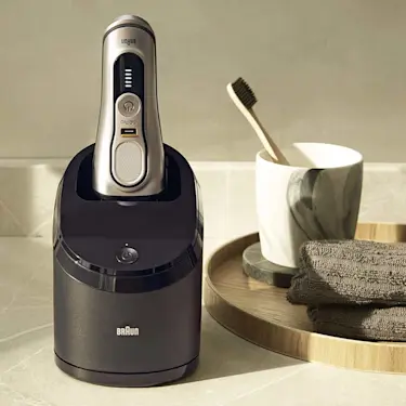 일부 브라운 Series 면도기 모델에는 클린앤차지 세척 장치가 제공됩니다. 버튼만 누르면 면도기가 자동으로 세척, 건조, 충전됩니다. 따라서 손쉽게 위생적으로 관리할 수 있습니다. 브라운의 클린앤차지 스테이션에 대해 자세히 알아보기